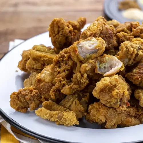 Crispy fried chicken belly bites, seasoned and fried to perfection