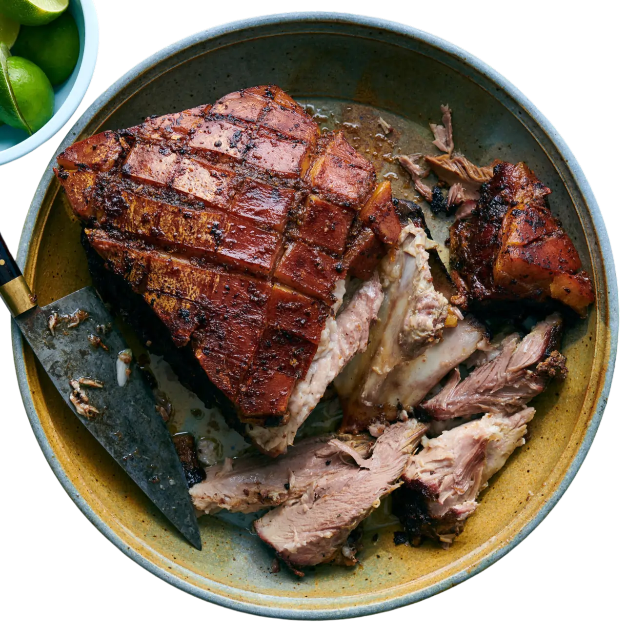 Slow-roasted pork served with arroz con gandules and tostones.